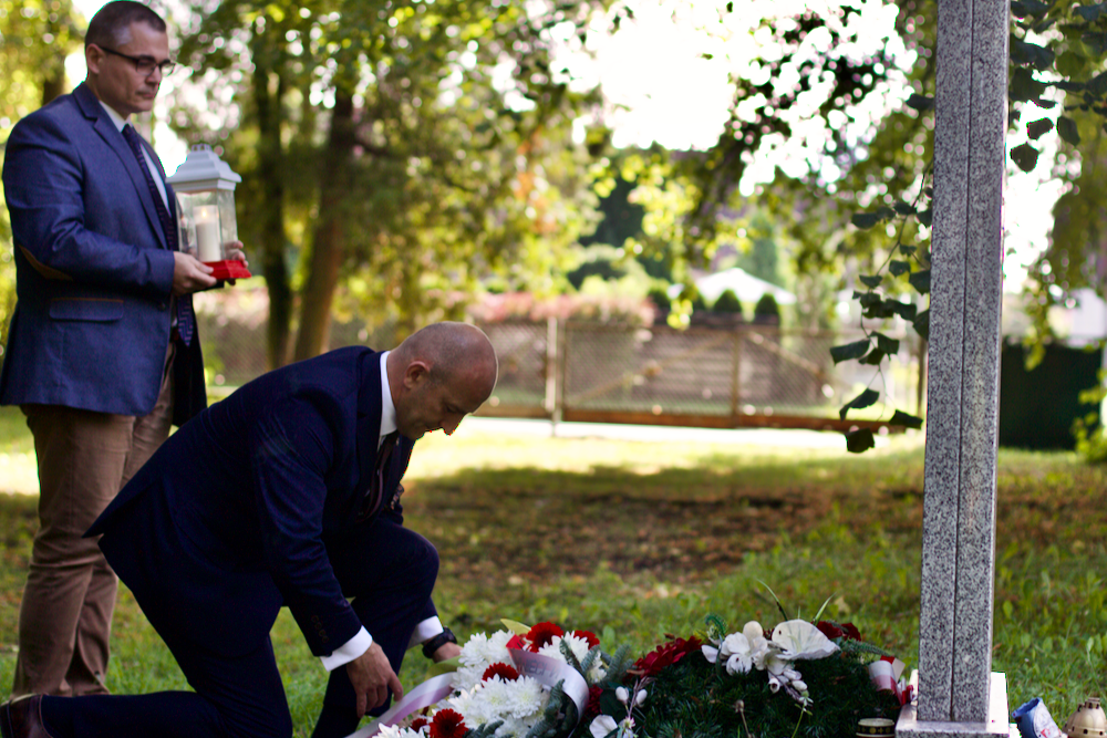 Kwiaty oraz znicze pod pomnikiem upamiętniającym żołnierzy polskich, którzy walczyli w obronie Polski we wrześniu 1939 r., zostali ranni i jako jeńcy wojenni zmarli w rezerwowym lazarecie kortowskim złożyli w rocznicę wybuchu II wojny światowej dr Marek Jedynak, dyrektor oddziału Instytutu Pamięci Narodowej w Białymstoku, dr hab. Karol Sacewicz, naczelnik olsztyńskiej delegatury Instytutu Pamięci Narodowej oraz dr Krzysztof Kierski.
